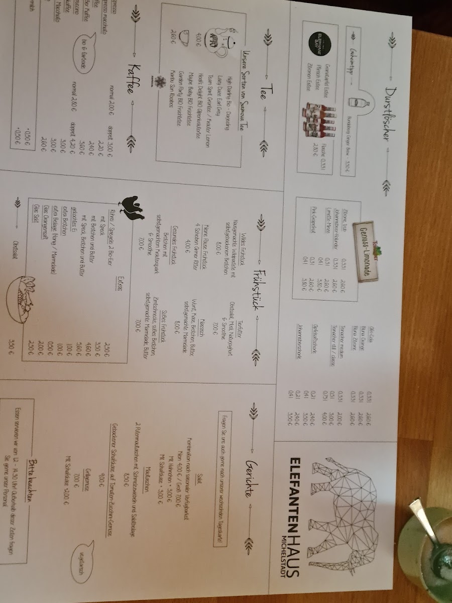 Elefantenhaus Menu